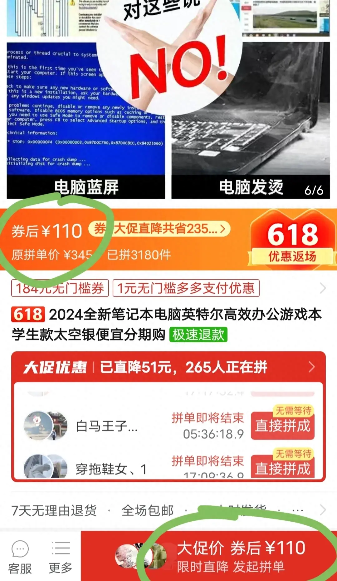 在那之后,我媽推薦說拼多多電腦便宜,我尋思再便宜能有多便宜,別給我整個二手的,然后她信誓旦旦的保證說幾百塊錢就夠了,雖然不信,但是我還是下了一個拼多多。