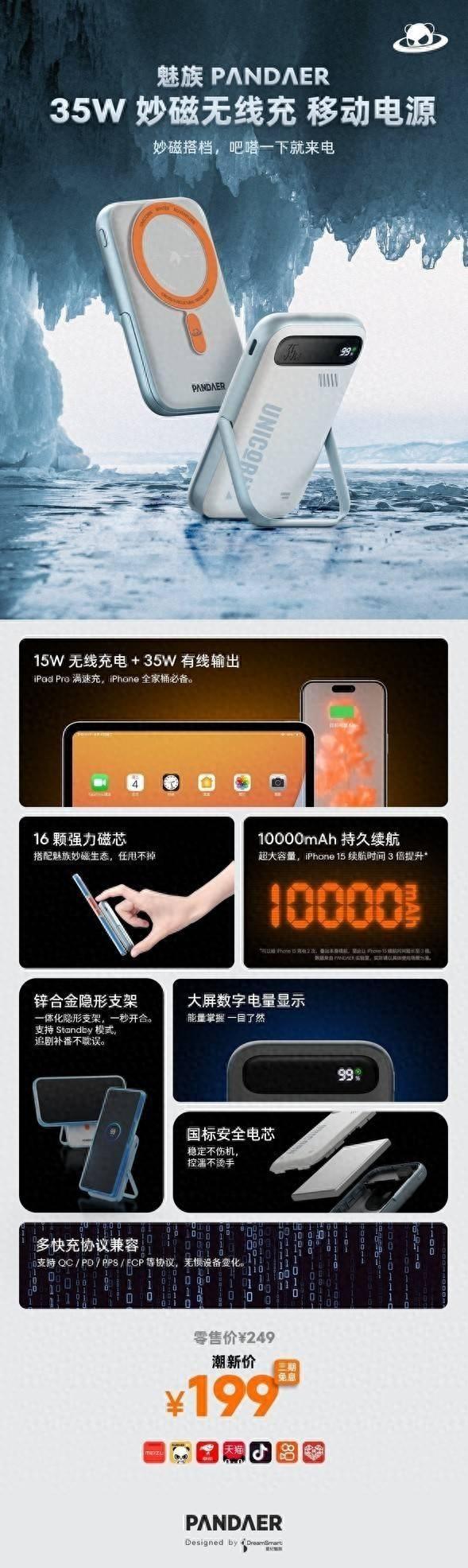這款移動電源的售價僅為199元,相比同類產品來說具備非常高的性價比。一般情況下,這樣的配置和參數在市面上的售價往往在300元左右,但魅族卻將其控制在了199元。可以說,對于追求性價比的消費者來說,PANDAER 35W妙磁無線充移動電源無疑是一個難得的選擇。