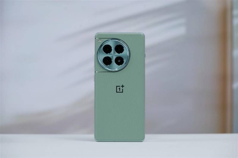 我們評測的是素皮版本,名為"綠野素青"。這款手機采用了行業首創的松脈樹紋工藝,背部紋理獨特,提升了整體質感和視覺效果。同時,一加采用了鏡頭Deco區一體同色工藝,使得攝像頭模組與整體顏色保持一致,形成了整潔統一的視覺效果。
