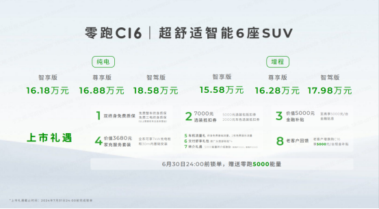 6月28日上市的零跑C16,起售價只有15.58萬元。