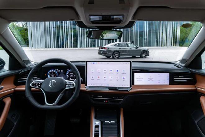 內飾質感部分,全新邁騰中控臺上配備了10.25英寸液晶儀表盤、15英寸中控屏幕和11.6英寸副駕娛樂屏幕三塊大屏,并搭載了驍龍8155芯片,在科技感方面并不遜于現在的造車新勢力。采用了電子懷擋,這樣一來,前排地臺就能設置更多的儲物空間了,提升了空間的實用性。值得一提的是,新車還配備了14個揚聲器的哈曼卡頓音響系統,音響效果出類拔萃。