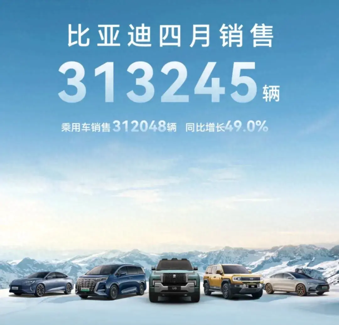 整個4月,比亞迪品牌共計實現銷量313,245輛,同比增幅高達49%。這一成績不僅創下了該公司單月新能源車銷量新高,也再次突顯了其在國內新能源車市場的領先地位。具體到各品牌,比亞迪王朝/海洋品牌、騰勢、方程豹、仰望品牌分別銷售了297,864輛、11,122輛、2,110輛以及952輛新車。