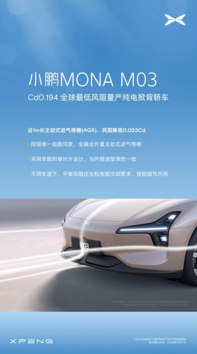 車身尺寸方面,小鵬MONA M03是小鵬MONA系列的首款車型。該車車長4780mm,車寬1896mm,車高1445mm在,軸距2815mm,比肩B級車,屬于一款中型純電轎車。不僅實現了3.31的長高比和1.31的寬高比,全面超越了運動轎跑的黃金比例。搭載的同級別唯一超跑同款的AGS全融合外置主動進氣格柵,在不同車速下,平衡優化風阻和電驅冷卻的需求,讓它擁有了更長的續航能力。