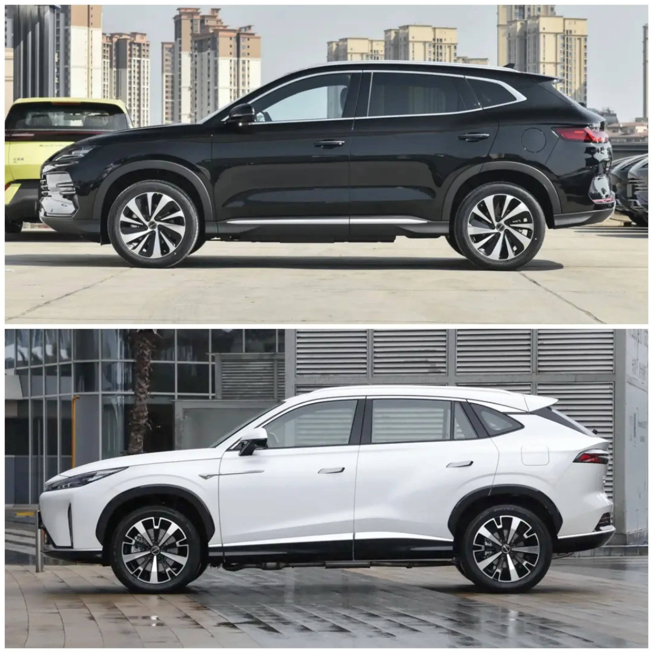 首先在車身尺寸方面,榮威D5X DMH的車身長寬高分別為4700mmx1890mmx1664mm,軸距為2765mm;宋PLUS DM-i的車身長寬高分別為4775mmx1890mmx1670mm,軸距為2765mm。可見兩款車在車寬與軸距兩個參數上完全相同,而在車長和車高兩個參數上,榮威D5X DMH略高于宋PLUS DM-i。