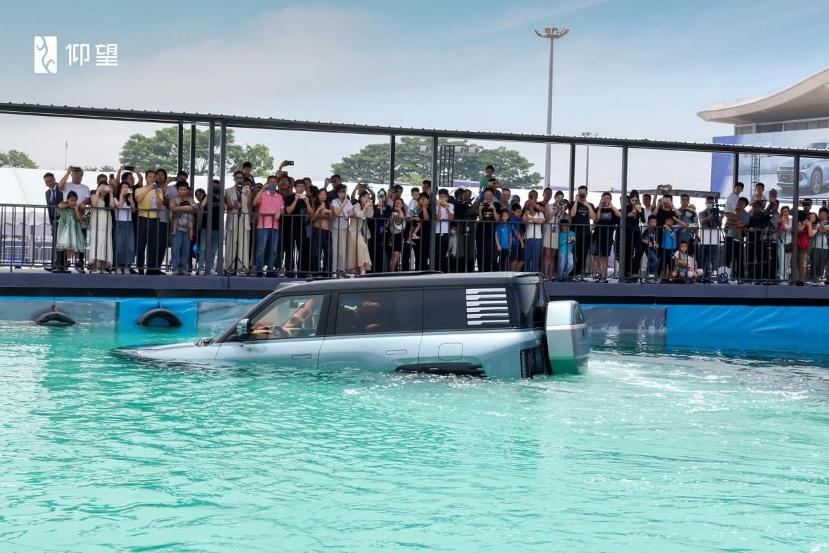 而且,關(guān)于仰望U8“下水游泳”的名場(chǎng)面,也遠(yuǎn)不止這次端午佳節(jié)與龍舟隊(duì)同框的場(chǎng)景。如6月1日在深圳舉辦的2024粵港澳大灣區(qū)車展,比亞迪不僅獨(dú)攬1號(hào)館,于外場(chǎng),仰望U8也在一眾圍觀群眾見證下,向大家展示了它作為車圈“游泳健將”的水上實(shí)力。