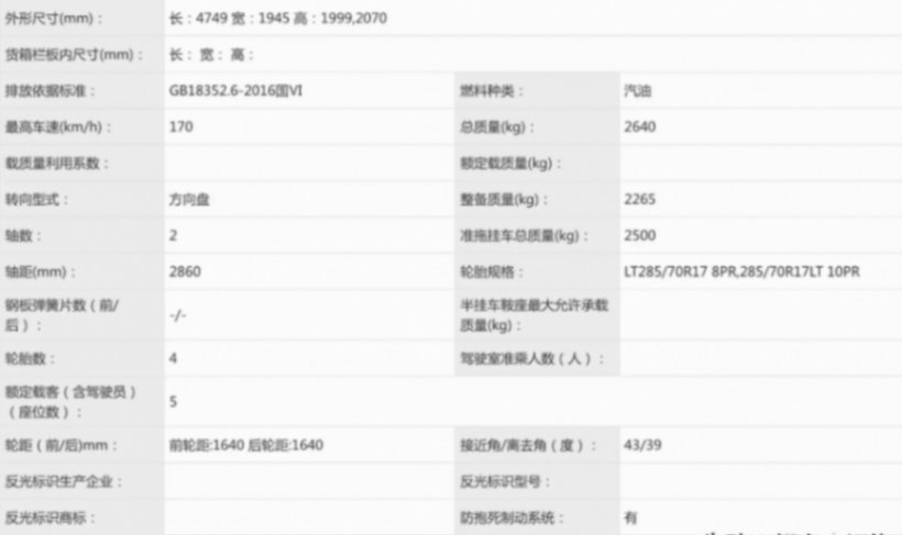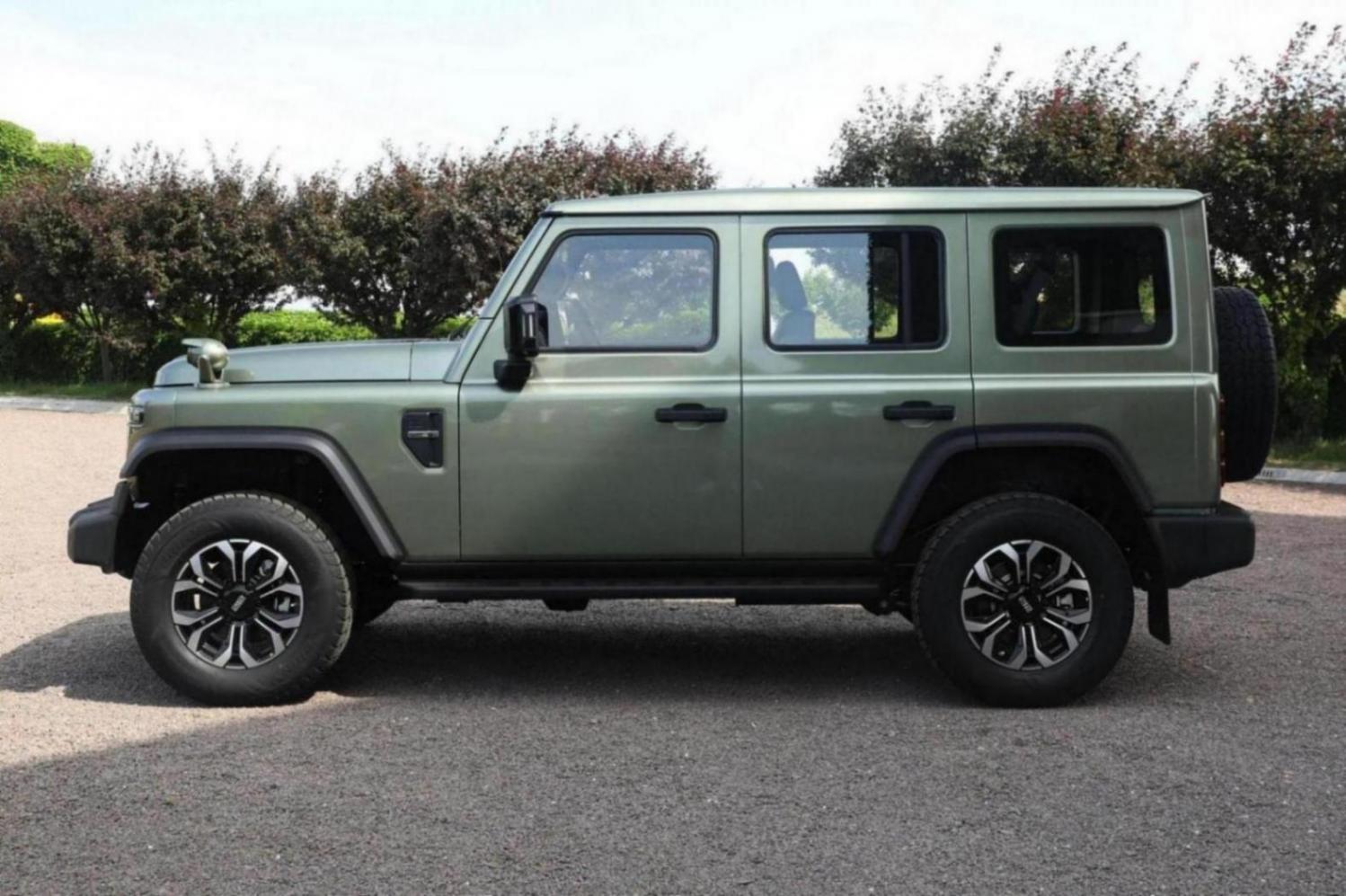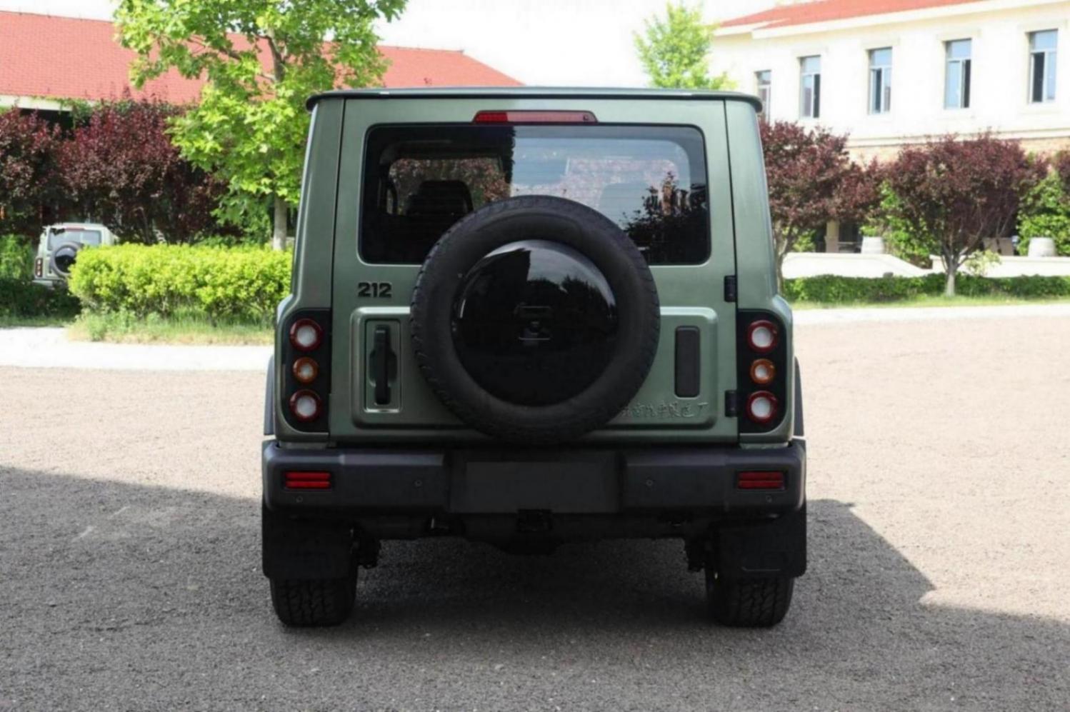 全新北汽制造212整車采用方盒子造型,整車的設計和做工有著明顯的提升,前后輪眉均采用黑色塑料包邊,側踏板采用固定式,尾燈采用圓形設計,并且經過黑化處理,后掛式備胎也采用全尺寸,長寬高分別為4705/1895/1936毫米,軸距為2860毫米。