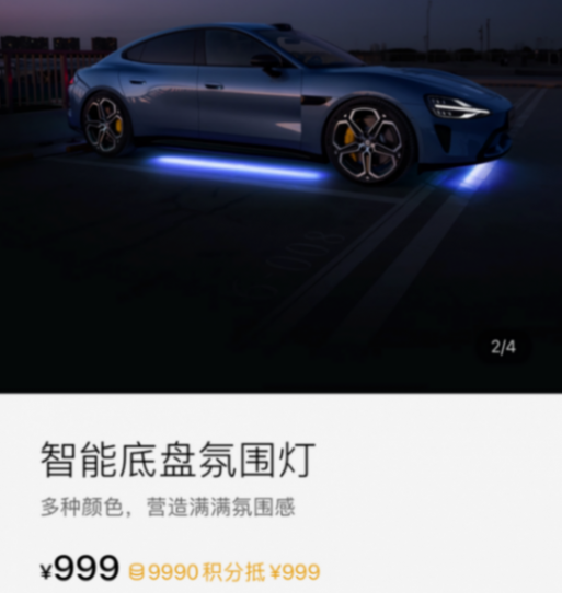 再看小米汽車的“殺馬特”加裝配件是怎么回事——日前,小米汽車發(fā)布了最新的SU7智能底盤氛圍燈。該產(chǎn)品于6月28日10時開始在小米汽車App商城上架開售,價格為999元。