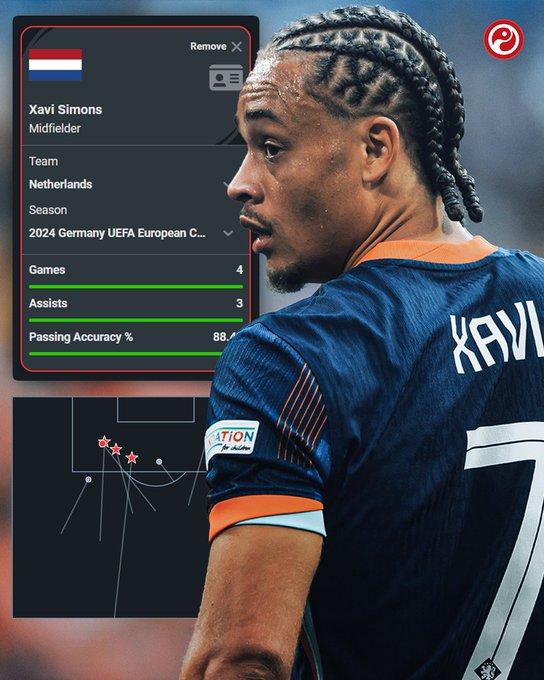 尤其需要強調西蒙斯的位置,過去三場比賽西蒙斯主要擔任攻擊型中場,或許很多人沒有想到,目前這位小將在歐洲杯助攻榜上排名第一(3次)。之所以印象不深,他的三個助攻其實都沒有實實在在把餅喂到前鋒嘴邊,需要前鋒得球后的個人表現,但從中場向前的銜接輸送,西蒙斯扮演了這支球隊當下最重要的轉換角色。