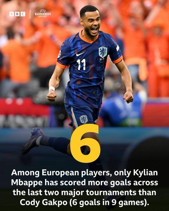 此外,對陣羅馬尼亞的比賽,加克波一球一助攻,25歲56天的他成為了 自1988年后荷蘭在大賽淘汰賽打出該數據的最年輕球員,而上一位是大名鼎鼎的范巴斯滕,當時只有23歲238天。