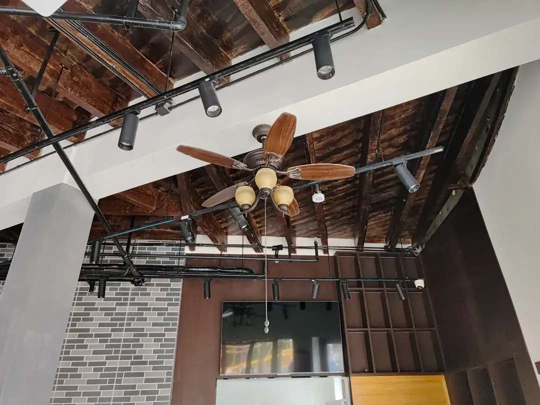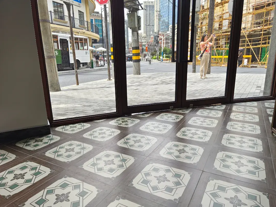 走進椿方圓內,店鋪硬裝已經基本完成,地面鋪設有傳統樣式的花磚,房頂上則懸掛著老式吊扇。