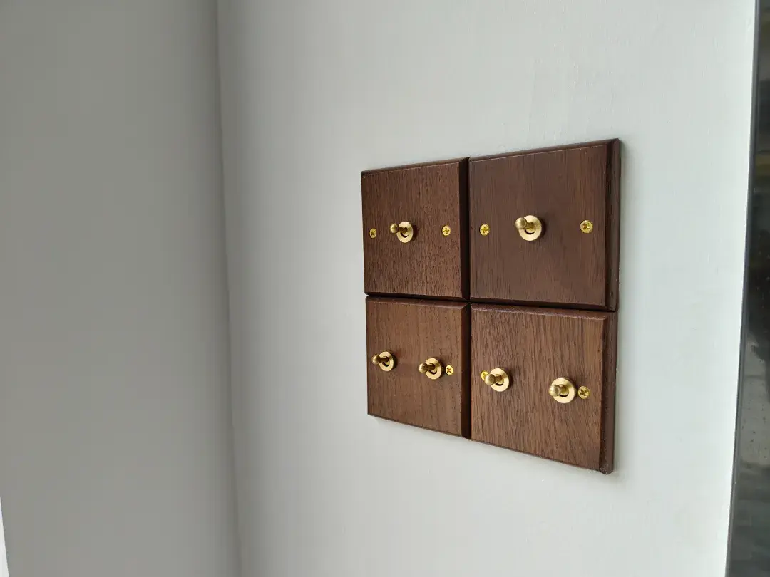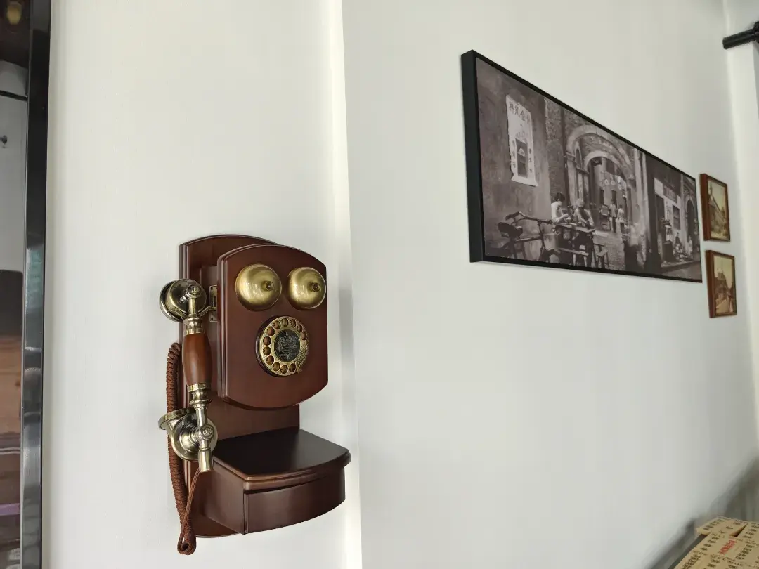 墻面上放置著一部老式的電話,連燈的開關都做成了復古的樣式,細節感滿滿。