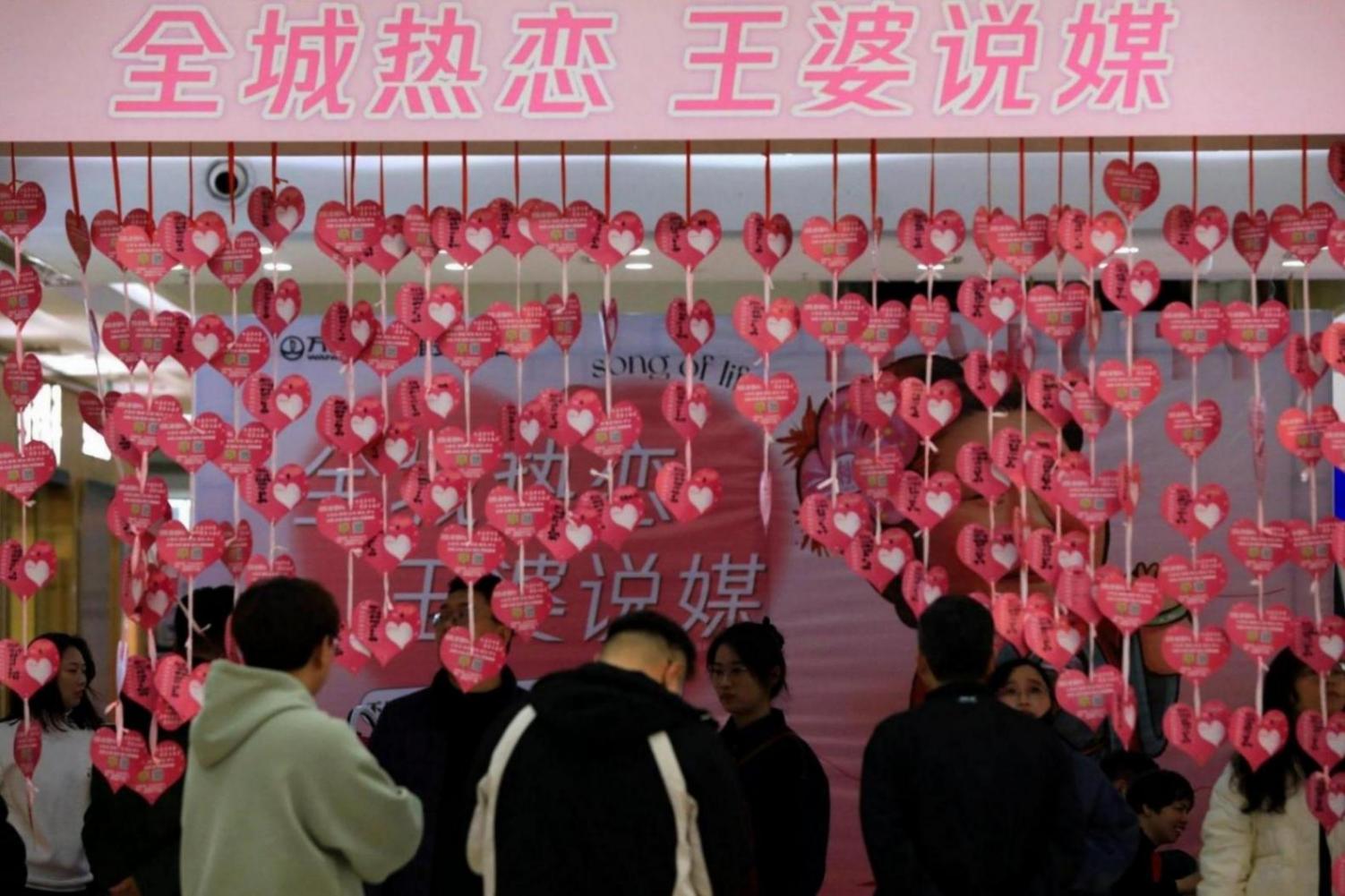 2024年4月13日,江蘇淮安,王婆說媒現場相親點,不少青年男女前來尋找心儀的另一半。