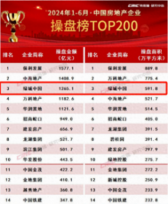 根據克而瑞的2024年1-6月全國操盤榜,保利、中海、綠城等實力型房企穩居TOP10。尤其是綠城中國,在品質為先的發展思路之下,繼續穩定在全國TOP3序列。而大本營所在的浙江區域,是綠城全國化高效運營的一個縮影。