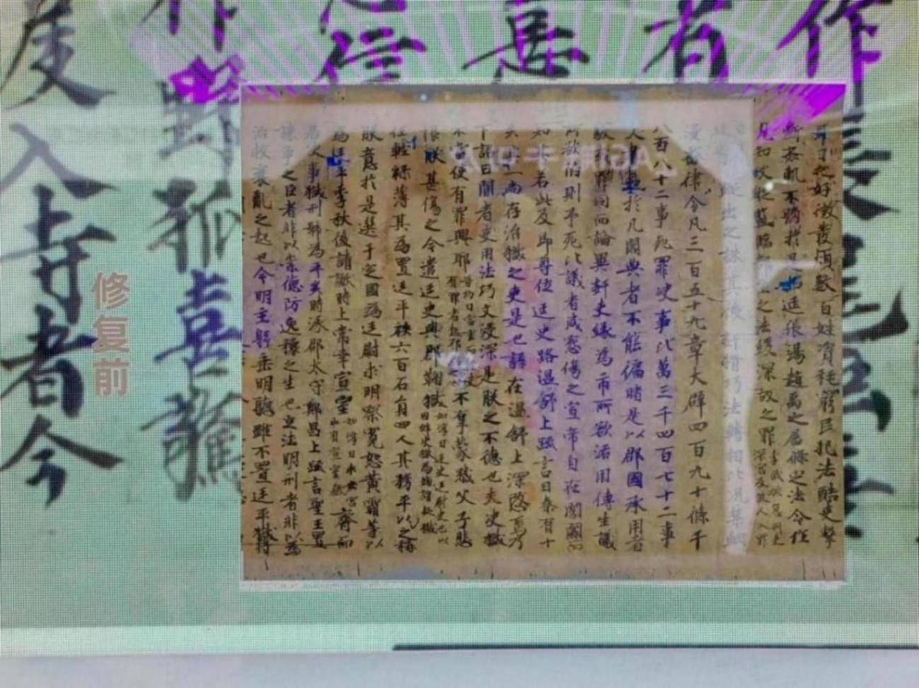 澎湃新聞記者看到,大會現場還展示了敦煌遺書系列文獻中《漢書·刑法志》節選章節的修復效果。《漢書·刑法志》是研究漢代司法制度和司法實踐的重要史實材料,這份曾凋零在千年時光中的殘卷,被AI拂去歲月的痕跡,第一次以完整的姿態向關注者們問好。