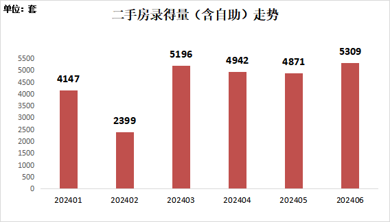 根據(jù)深房中協(xié)統(tǒng)計,2024年6月全市二手房錄得(錄得量系指深房中協(xié)以二手房買賣合同發(fā)起時間為口徑統(tǒng)計的數(shù)據(jù),并非最終成交過戶套數(shù))5309套,環(huán)比增長9.0%,同比增長66.3%。