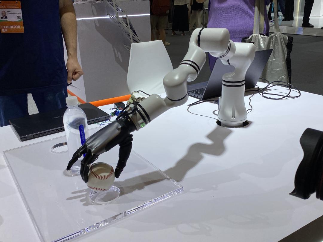 在世博展覽館的傲意科技展臺(tái),模擬人體手部運(yùn)動(dòng)的高靈敏度末端執(zhí)行裝置ROHAND靈巧手不斷地做出拿取礦泉水、擺放網(wǎng)球等精細(xì)化動(dòng)作,引得參觀者紛紛駐足。