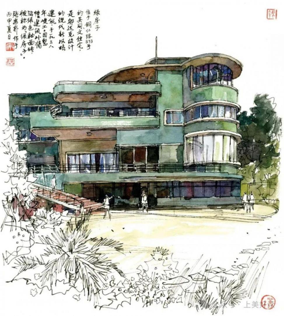張安樸先生通過硬筆水彩畫的形式精心描繪了鄔達(dá)克在上海的30幢經(jīng)典老建筑作品。