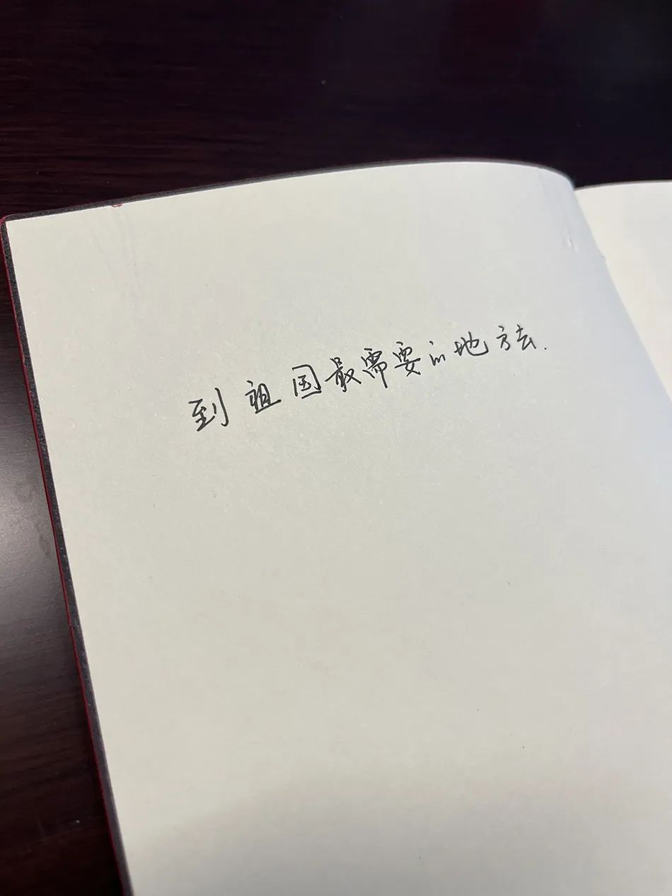 張迪的筆記本上寫(xiě)著“到祖國(guó)最需要的地方去”。