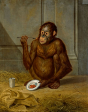 圖5 特薩特·菲利普·克里斯蒂安·哈格 紅毛猩猩吃草莓 1776年 油畫 布倫瑞克州立博物館