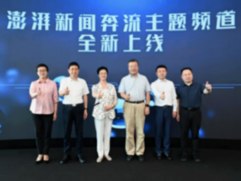 上海市方志辦黨組書記、主任王玉梅,同濟大學黨委副書記吳廣明,上海市社會科學界聯合會專職副主席任小文,東航集團宣傳部部長劉曉東,中共靜安區委常委、宣傳部部長蕭燁瓔,澎湃新聞總裁、總編輯劉永鋼共同啟動“澎湃新聞奔流主題頻道”。