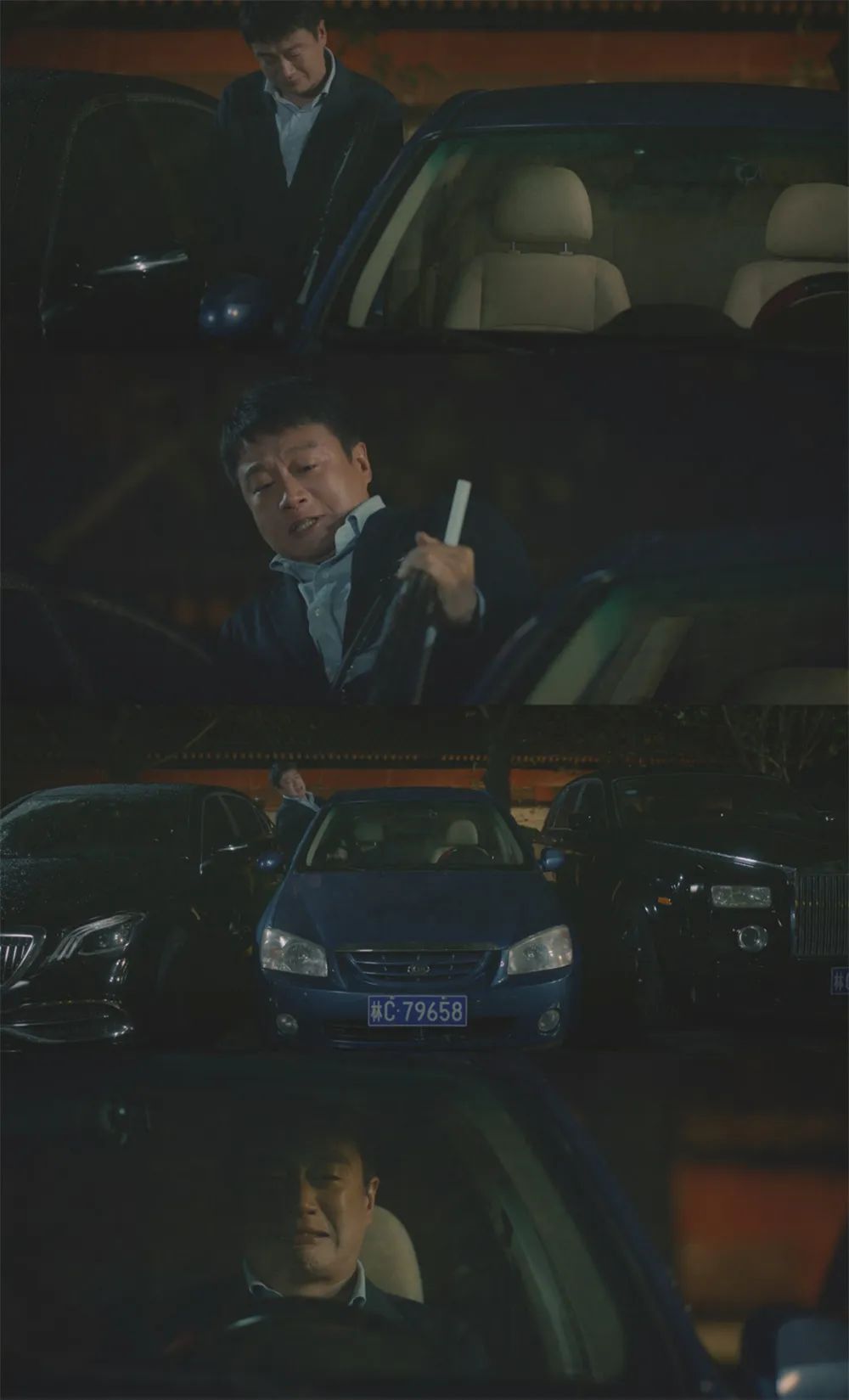 顧己鳴倉惶離開,他的車輛旁邊停著一輛勞斯萊斯,其駕駛位與顧己鳴的車門之間僅留有一線之隔,完全不足以讓他順利進入車內。顧己鳴請求司機稍微移動一下車輛,遭到對方譏諷:“你知道我一腳油門多少錢嗎?”顧己鳴只好在兩車之間的狹縫中艱難地從車窗爬進車內,這一刻就像一把鋒利的刀片割裂著他的尊嚴,他憋屈、難堪、不甘、憤懣,淚水在眼眶里打轉,恨在內心堆積。