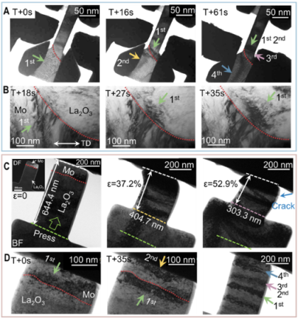 對此,科研團隊首創性地提出了一種“借位錯”思想:如果將金屬中的位錯“借”給陶瓷,陶瓷就有可能像金屬一樣具有塑性。于是,他們在金屬和陶瓷之間設計了一種有序結合的界面,通過化學鍵結合的方式,有效地提高了界面的結合強度,從而確保界面不開裂。該有序界面還保證了金屬和陶瓷晶面的連續性,使金屬位錯可以輕松地“借”到陶瓷內部。正因為這種有序界面,讓金屬位錯源源不斷地向陶瓷內傳遞,使陶瓷具有了像金屬一樣的拉伸塑性。
