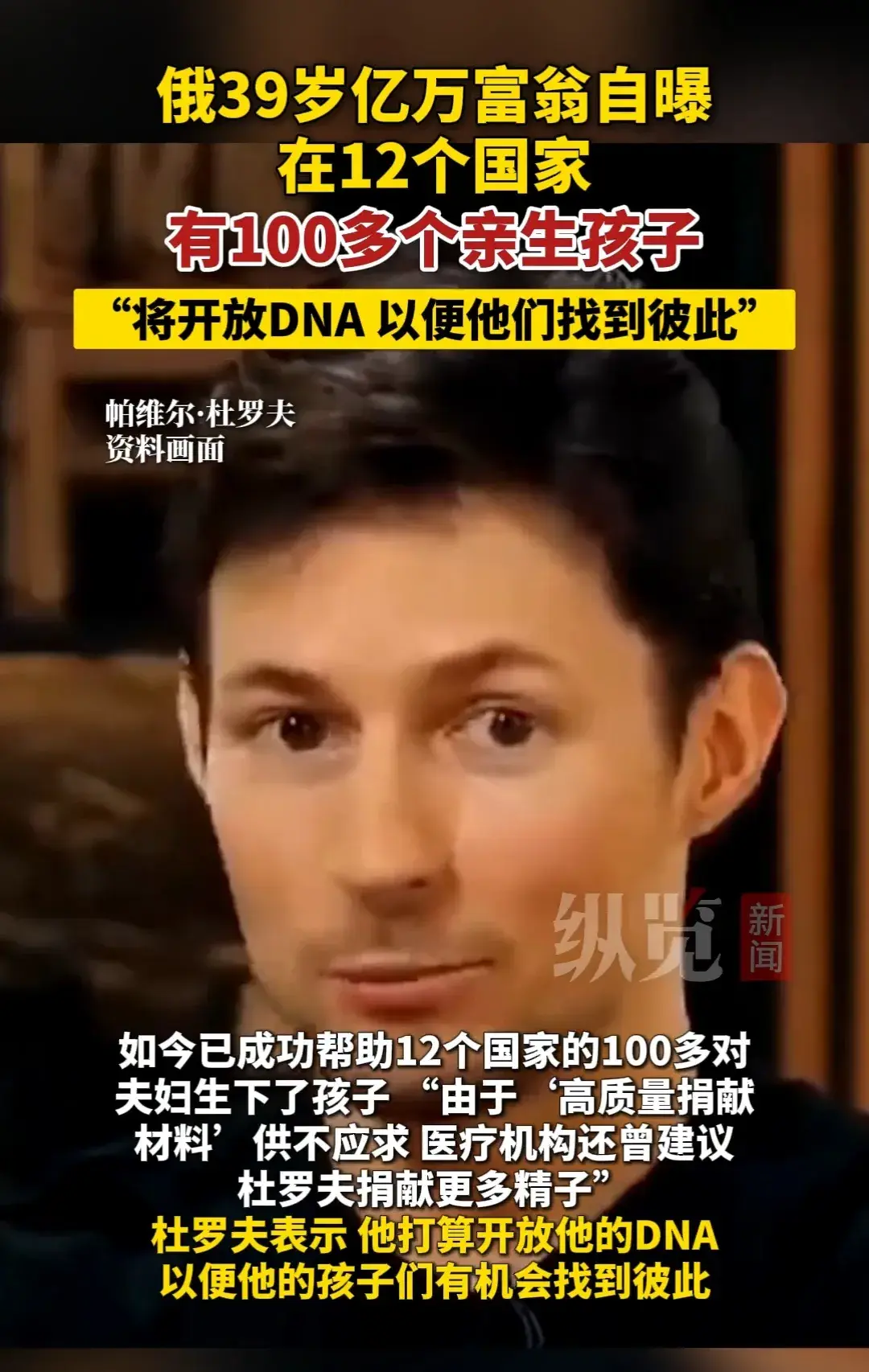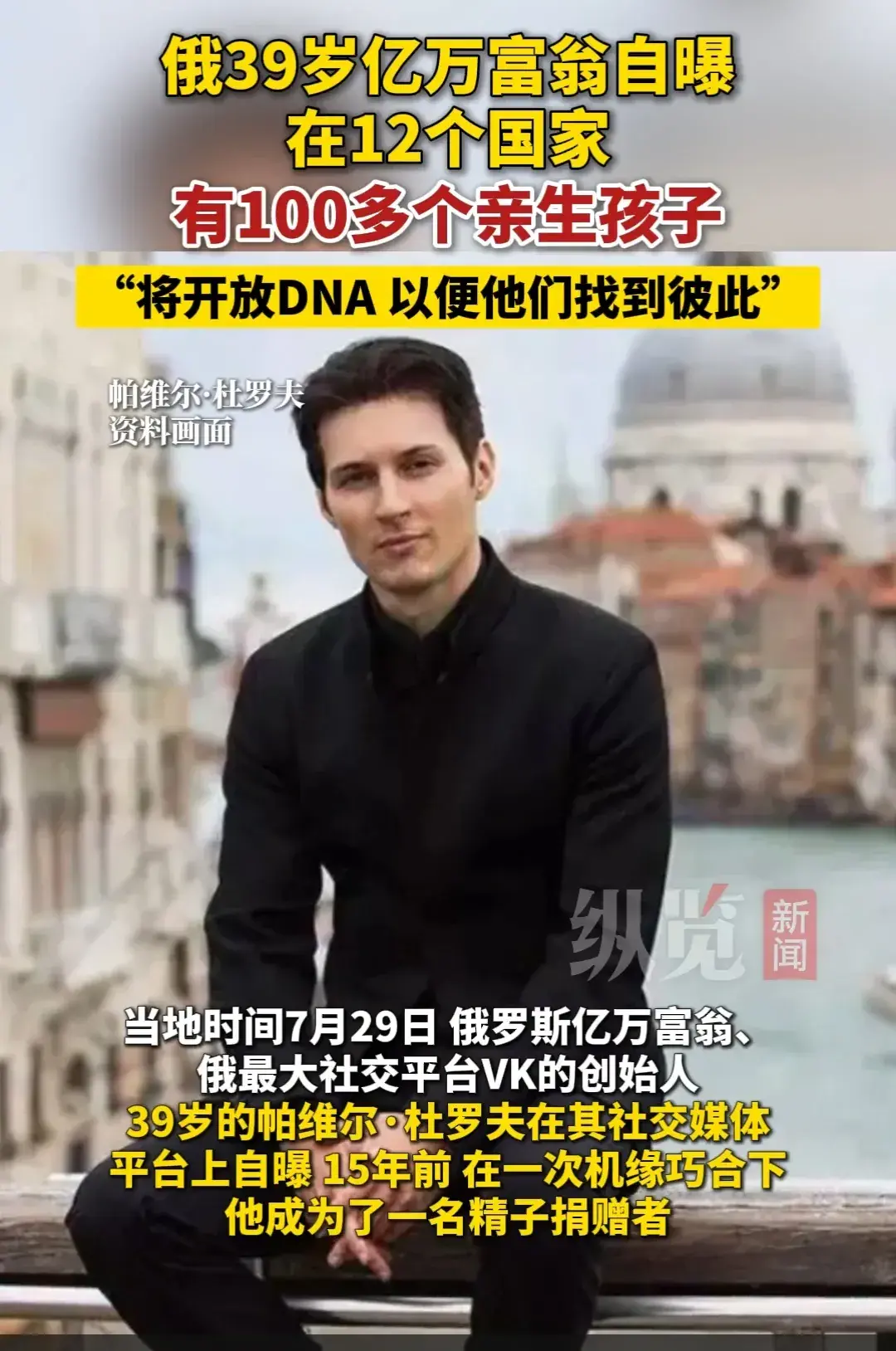 這個39歲億萬富翁,是俄羅斯最大社交平臺上的創始人,他在15年前,也就是他24歲的時候,在一對朋友夫妻的請求下,給他們捐獻了精子,自此之后,他便一發不可收拾,成為了一名精子捐贈者。
