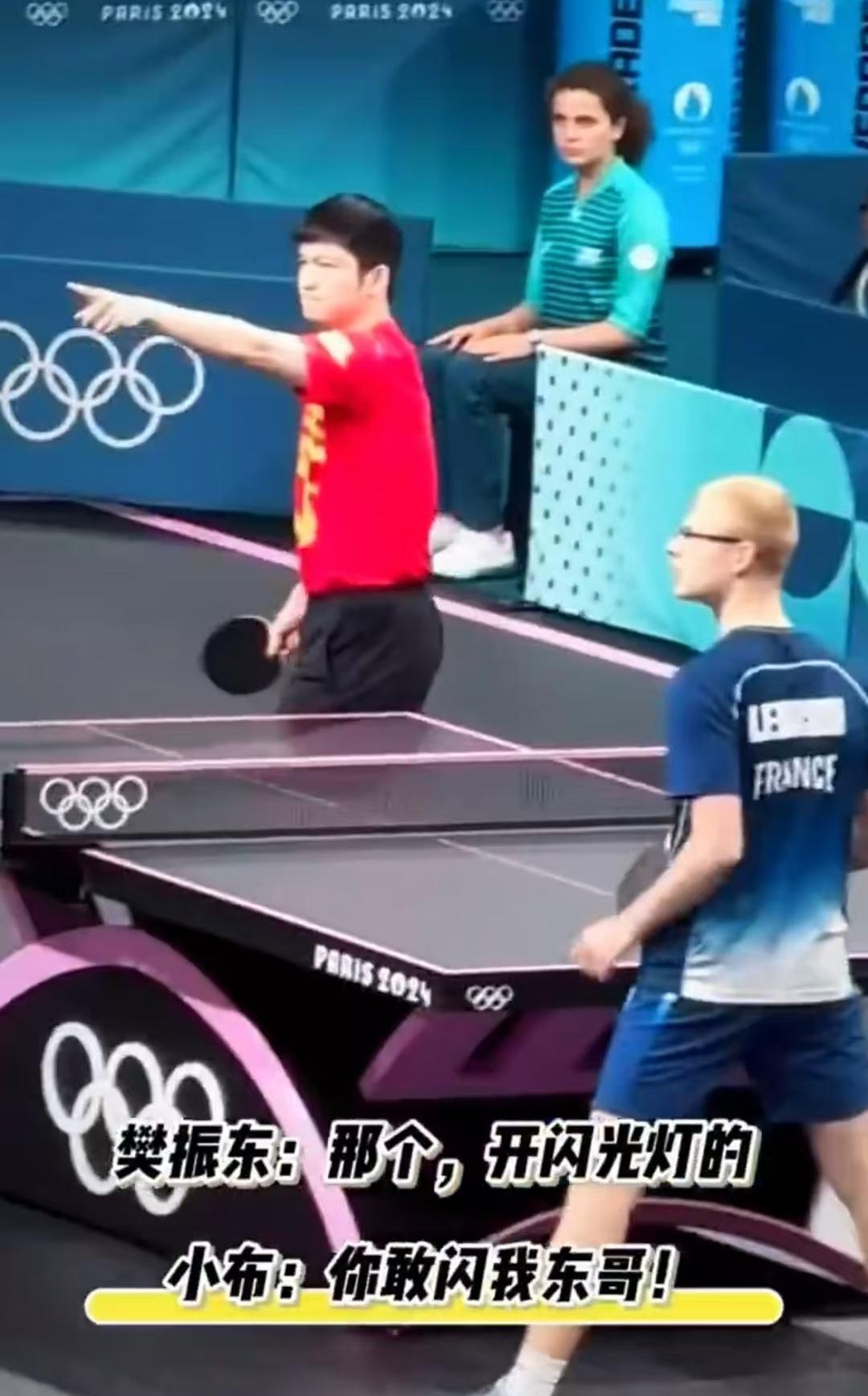 攝像師打開了閃光燈,這也是讓樊振東第一時間就受到了影響,不過,樊振東也是非常的霸氣,樊振東并沒有慣著對方的攝像師,樊振東暫停了比賽,指著遠(yuǎn)方攝像師的方向,示意他關(guān)掉閃光點(diǎn),樊振東的舉動讓攝像師成為了眾矢之的,面對霸氣的樊振東,他也是迅速的關(guān)掉了閃光燈,而此時17歲的勒布倫的表現(xiàn)也是非常的真實(shí),勒布倫可不管對方是不是幫助自己,勒布倫是嘰里呱啦的對著攝像師一通怒批,附議了樊振東的意見,可以說這一次攝像師想幫人的心是踢到了鐵板了。
