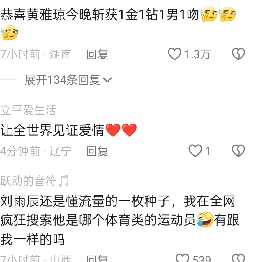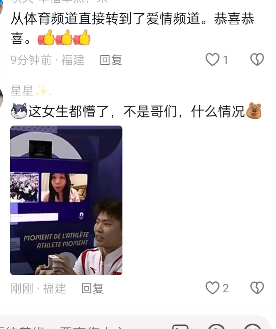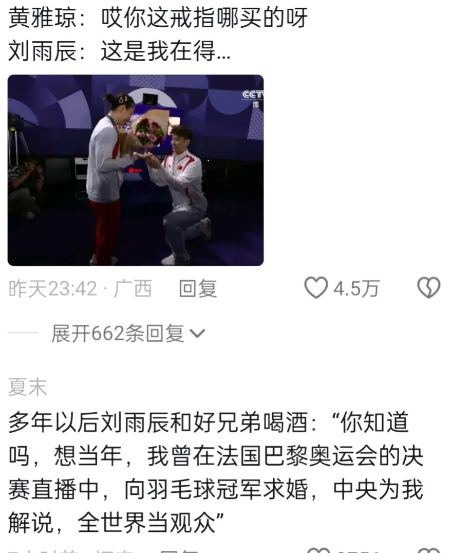 劉雨欣求婚王雅瓊。這一好消息馬上沖上熱搜!之后奧運獎牌榜更新了一金一鉆。