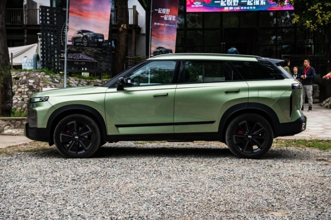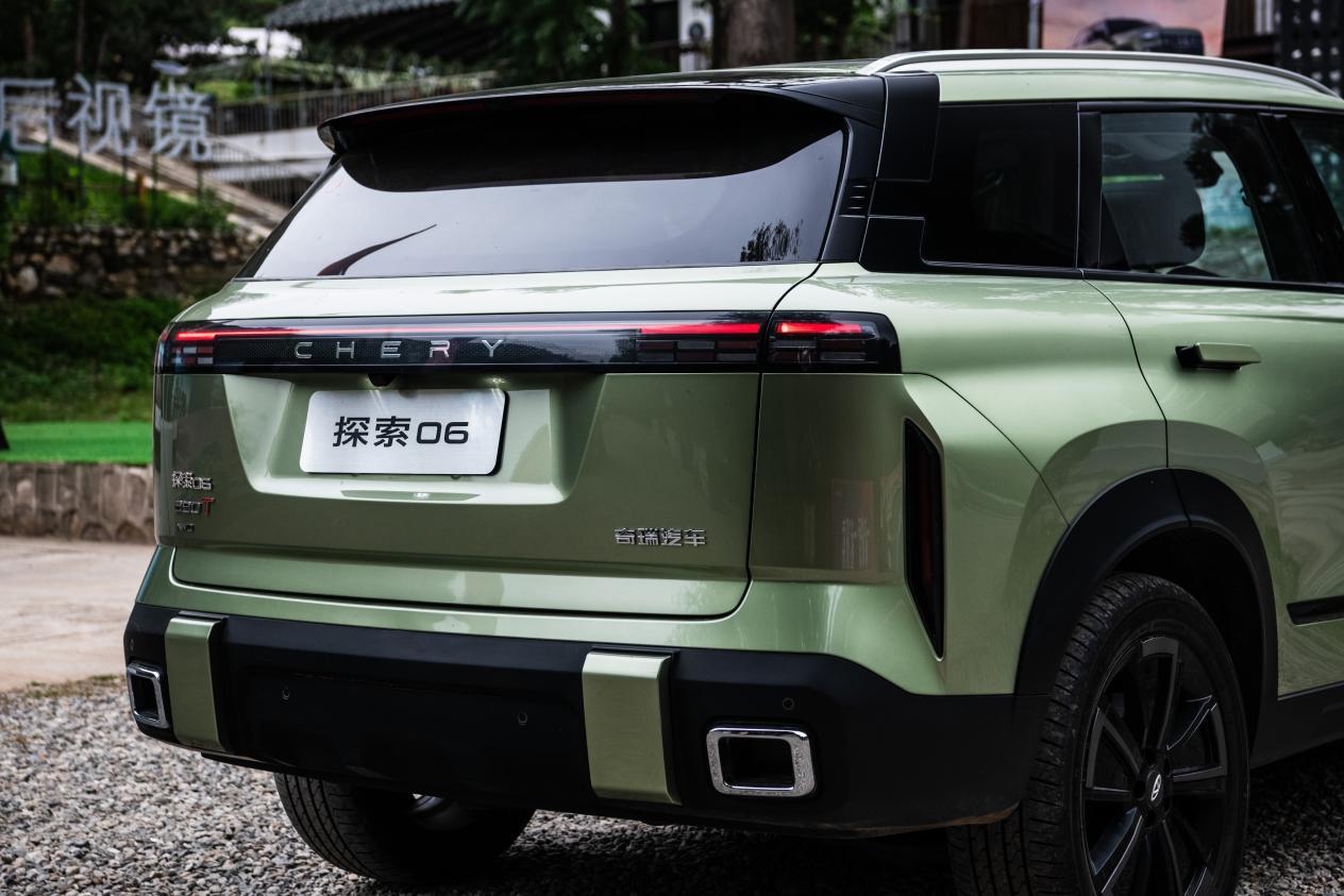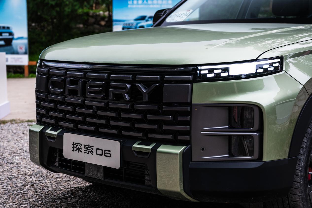 前臉部分,新車有著極為夸張的進氣格柵,內部還加入了矩陣式裝飾和巨大的CHERY字母標識點綴,搭配粗大的前杠,看起來無比硬朗霸氣。
