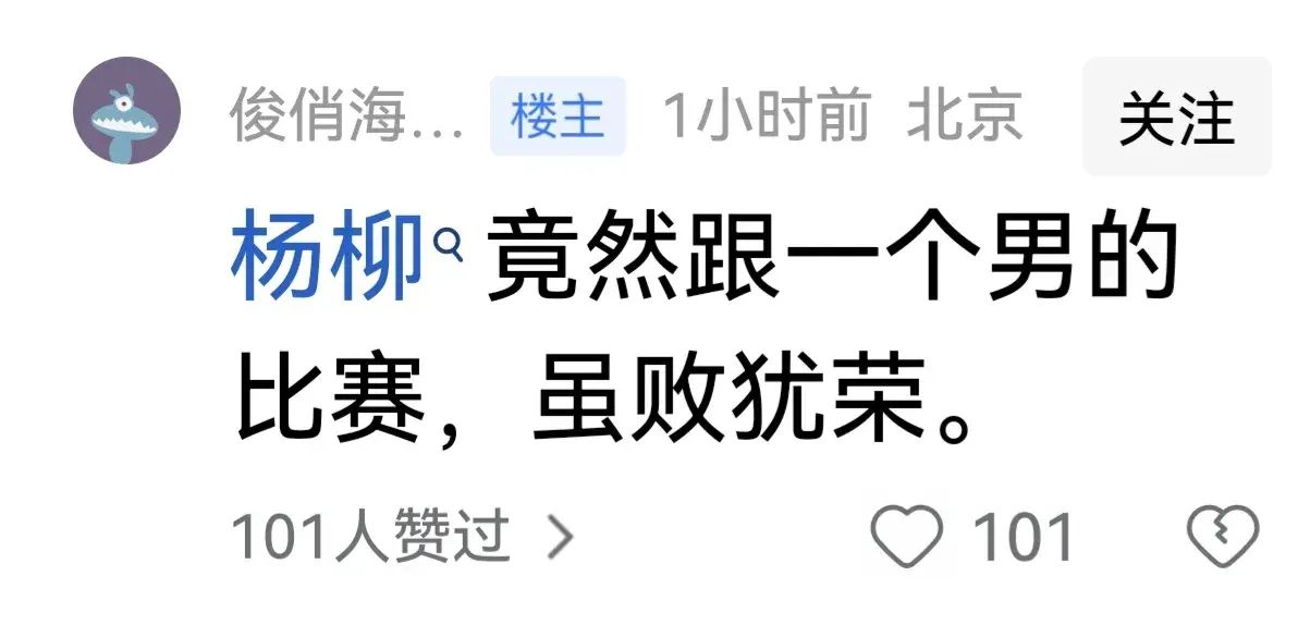 也有網友認為這場比賽楊柳就不應該打的,一打就表明接受認可,這個先例不能開!棄權應該是更好的選項!