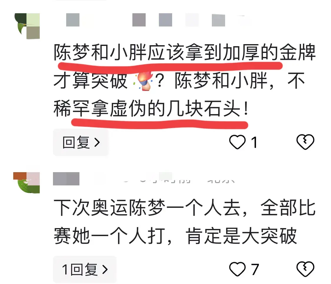 也有網友質疑:你說馬龍獲得了大突破,確實,6金王,可32強呢?陳夢和小胖應該拿到加厚的金牌才算突破?陳夢和小胖,不稀罕那虛偽的幾塊石頭!