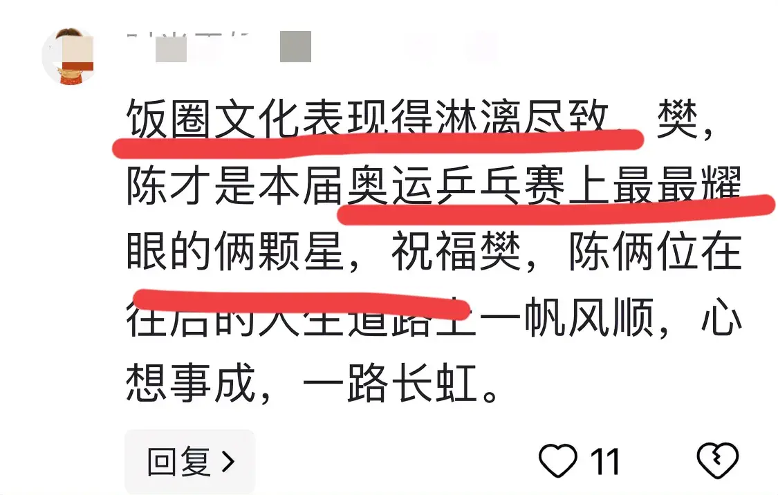 還有網友認為,這不就是妥妥的飯圈文化嗎?樊振動和陳夢才是巴黎奧運乒乓賽上最最耀眼的兩顆星,不給他們,王楠夫婦有點摳門。