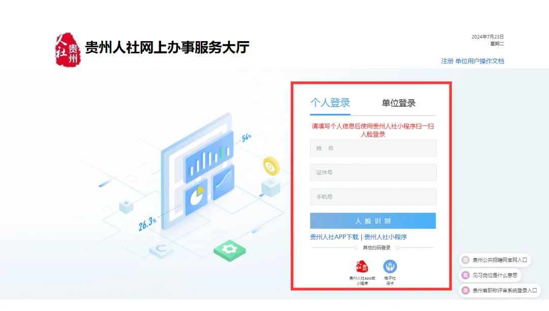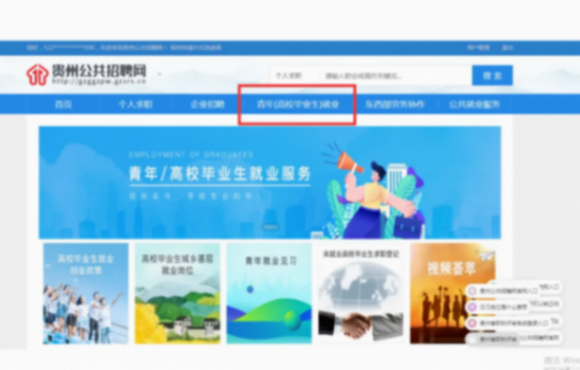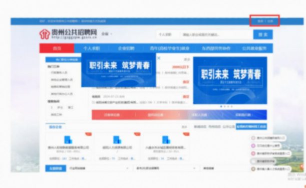 第一步:打開貴州公共招聘網并點擊右上角“登錄”按鈕。