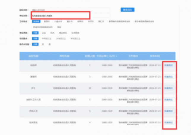 第四步:打開青年就業見習模塊下拉瀏覽見習崗位,也可以直接搜索醫院名字或崗位名稱,選中崗位后點擊“投遞崗位”