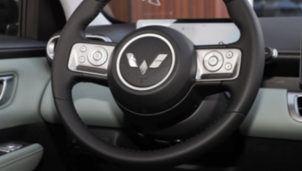儀表臺上方為硬質,下方則為軟質包覆,用料比較常規。五菱繽果PLUS的方向盤為兩輻式設計,與車內整體風格十分搭配,但方向盤尺寸較小,握感偏細。