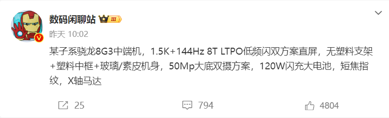 盡管 2024 年第一季度仍未結束,但今年各大手機廠商的新機爆料進度明顯比往年更為提前。近日數碼博主數碼閑聊站在與網友的互動中提及了一款子品牌換代產品,綜合爆料內容來看預計為 iQOO Neo 10 Pro 的早期規格爆料。