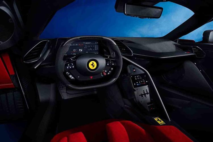 內飾上,新車采用雙座設計,中控臺朝向駕駛員一側,全新的方向盤是F80內飾的一大亮點,未來應該會下放到法拉利的其它車型上去。動力上,新車搭載的是一臺V6發動機+三電機組成的插電混動系統,發動機最大功率913馬力,電動機總功率330馬力,綜合功率1217馬力,百公里加速僅需2.15秒,這也是法拉利有史以來最快的產品。