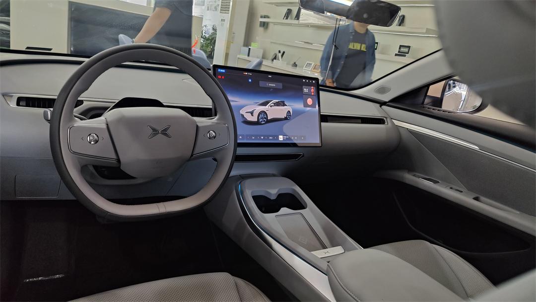 內(nèi)飾造型和G6、X9等車型的風(fēng)格也不一樣。不但造型非常簡單,而且裝飾用料很少,空調(diào)出風(fēng)口也是電子式的,甚至儀表盤也被取消了。方向盤的設(shè)計(jì)也因此和小鵬的家族式風(fēng)格不同,左右兩側(cè)沒有多余的按鍵,全靠滾輪控制。好在默認(rèn)功能也不多,左側(cè)主要控制巡航功能,右側(cè)主要控制多媒體,上手難度不高。另外方向盤全系只有手動調(diào)節(jié),不過這幾乎已經(jīng)是小鵬30萬元以下車型的“家族特色”了。