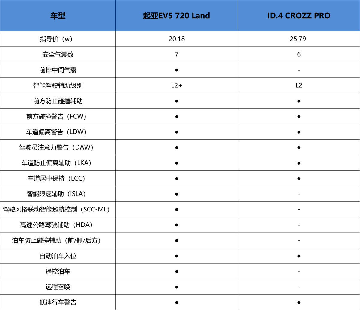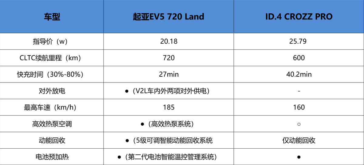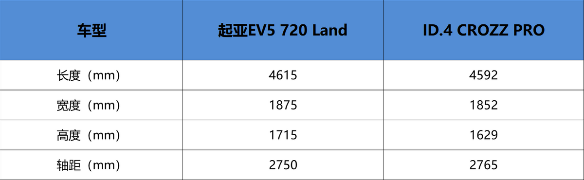 當然國人買東西向來是會貨比三家,那么這兩款車誰更值得選擇呢?本次就選擇起亞EV5(720 Land 20.18萬)和大眾ID.4 CROZZ(PRO 25.79萬)進行一場多維度對比,看看誰綜合表現更出色。