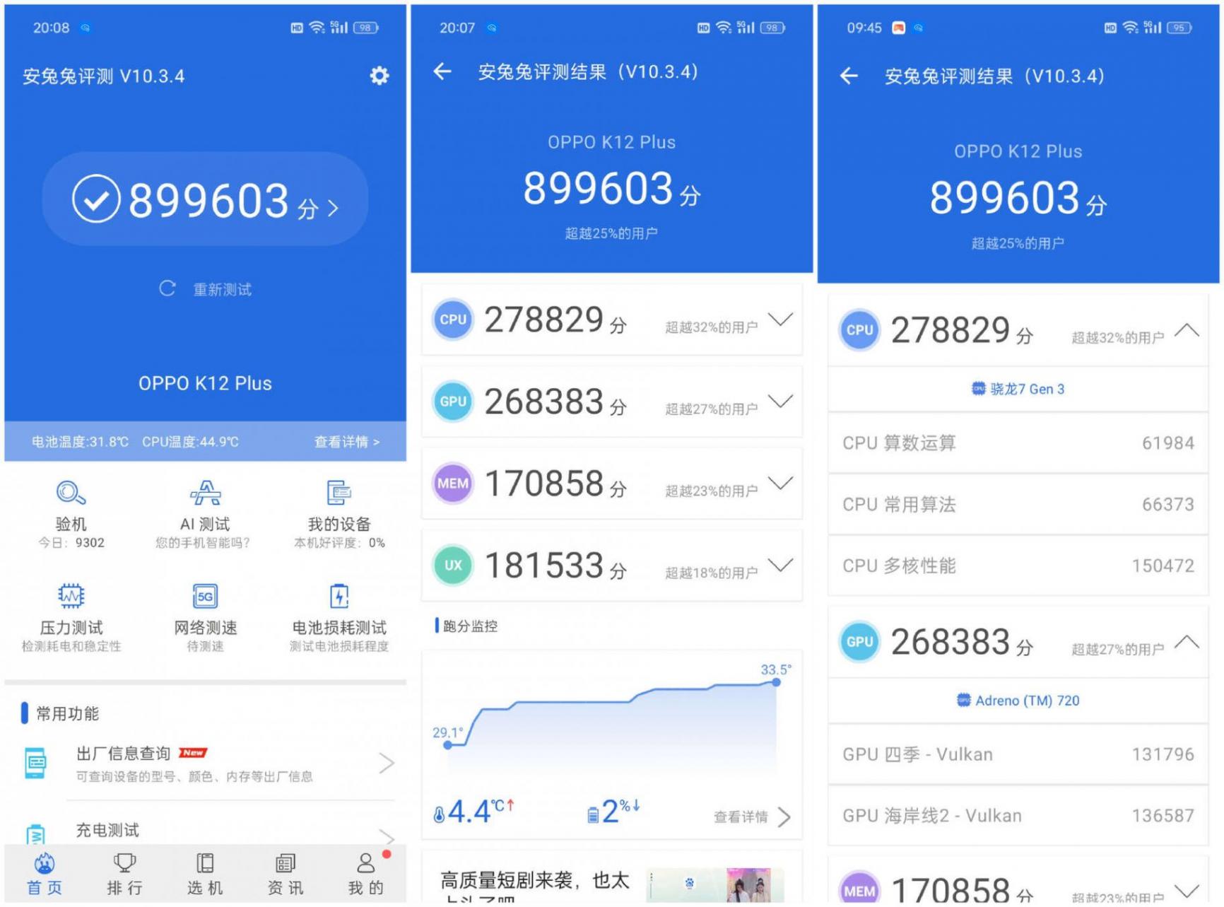 OPPO K12 Plus搭載的是第三代驍龍7移動平臺,這塊SoC采用了臺積電4nm制程工藝打造,繼承了第二代驍龍8的GPU、NPU和ISP架構,從性能上來說,第三代驍龍7移動平臺算不上多強,但是在這個價位段也確實是足夠使用了。