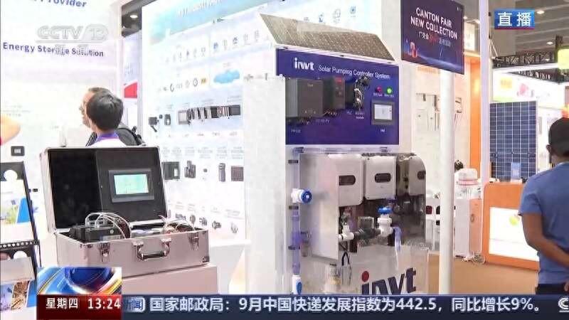總臺記者 吳媚苗:我現在所在的位置是廣交會展館的14.3號新能源館,這里總共有110家新能源企業參展,現場可以看到不少海內外采購商前來了解光伏產品、鋰電池等等新能源產品。