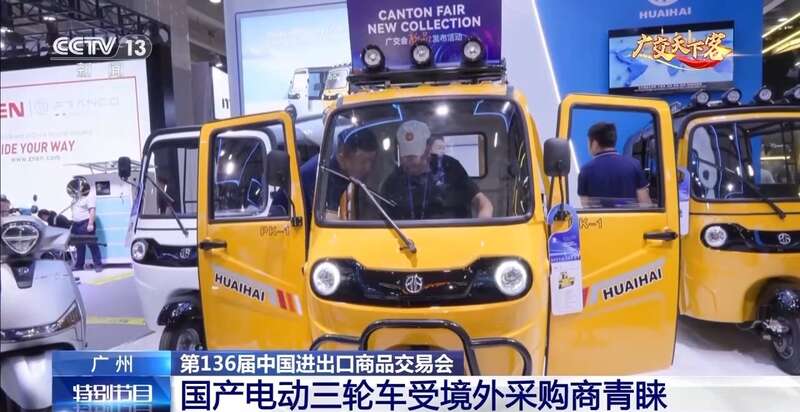 本屆廣交會上,在新能源汽車及智慧出行展區內,電動三輪車類目的展品以其便捷環保的特點吸引了眾多境外采購商的到來。