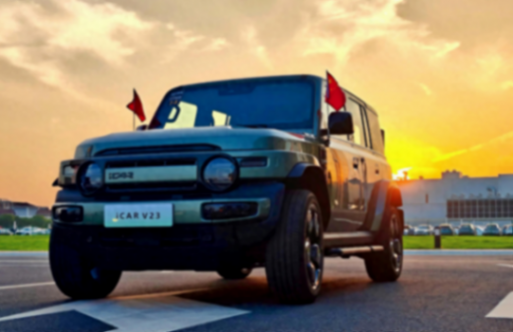 奇瑞iCAR V23是一款集復(fù)古與現(xiàn)代感于一身、配備先進智能科技的緊湊型SUV。新車采用“方盒子”造型,車身線條分明,復(fù)古圓燈搭配LED日行燈,粗壯的格柵上刻有iCAR字樣,車尾配備3X3點陣式尾燈,設(shè)計靈感來自油桶的“小書包”外掛式儲物箱。