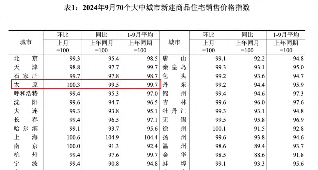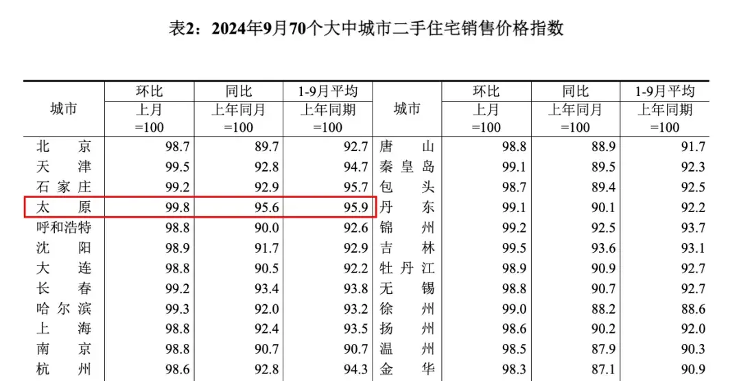 二手房方面,太原9月環比下跌0.2%,跌幅全國最低!同比下跌4.4%,比去年同期下跌4.1%。