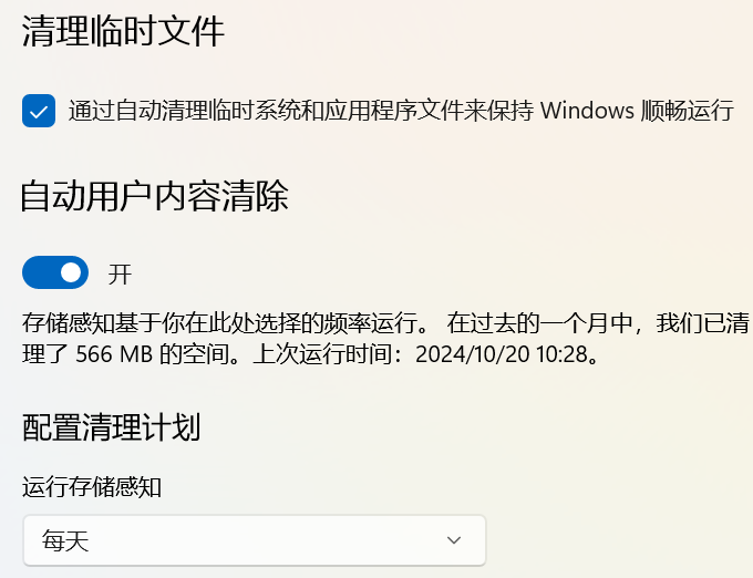 ?打開(kāi)【存儲(chǔ)感知】,臨時(shí)文件清理時(shí)間都改為1天