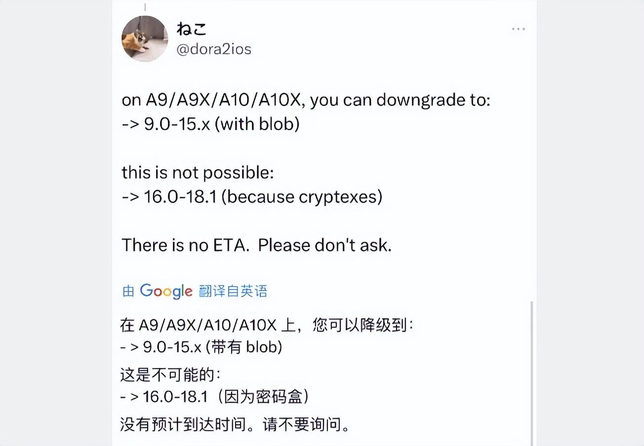 意思是 iPhone XS - 16 設備就別想了,目前技術不支持這些設備降級的。針對 iPhone X 及較久的設備才支持這種降級,確定支持含SHSH2降級的方法,對于強制降級方法,不確定是否有限制要求,所以需要等發布才知道。