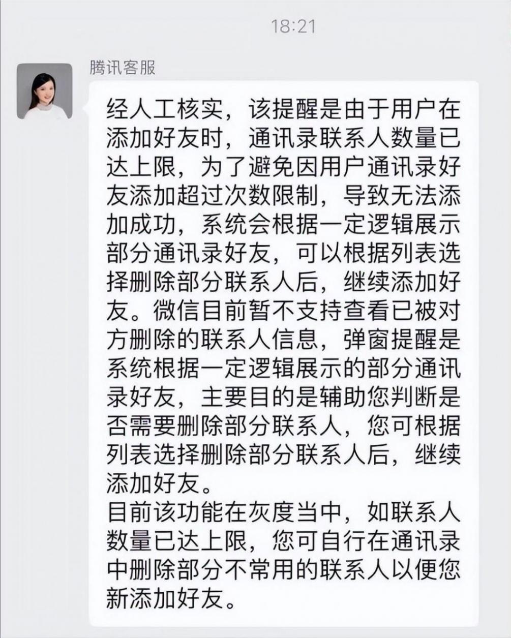 在各種討論聲中,微信官方也及時作出回應(yīng),聲稱“查刪單向好友”功能目前并未上線,未來是否推出尚無定論。客服回復(fù)中提到,當(dāng)用戶通訊錄好友達(dá)到上限后,系統(tǒng)會展示部分通訊錄好友信息,幫助用戶判斷是否需要刪除部分聯(lián)系人,以便繼續(xù)添加新好友。然而,這樣的回應(yīng)似乎并不能平息網(wǎng)友們的擔(dān)憂。大家都在想,既然內(nèi)測都已開始,為什么還要隱瞞?難道這個功能真的有上線的可能性?
