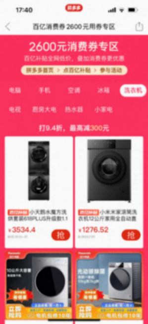 國家換新補貼專區登錄拼多多百億補貼,最高補貼2000元
