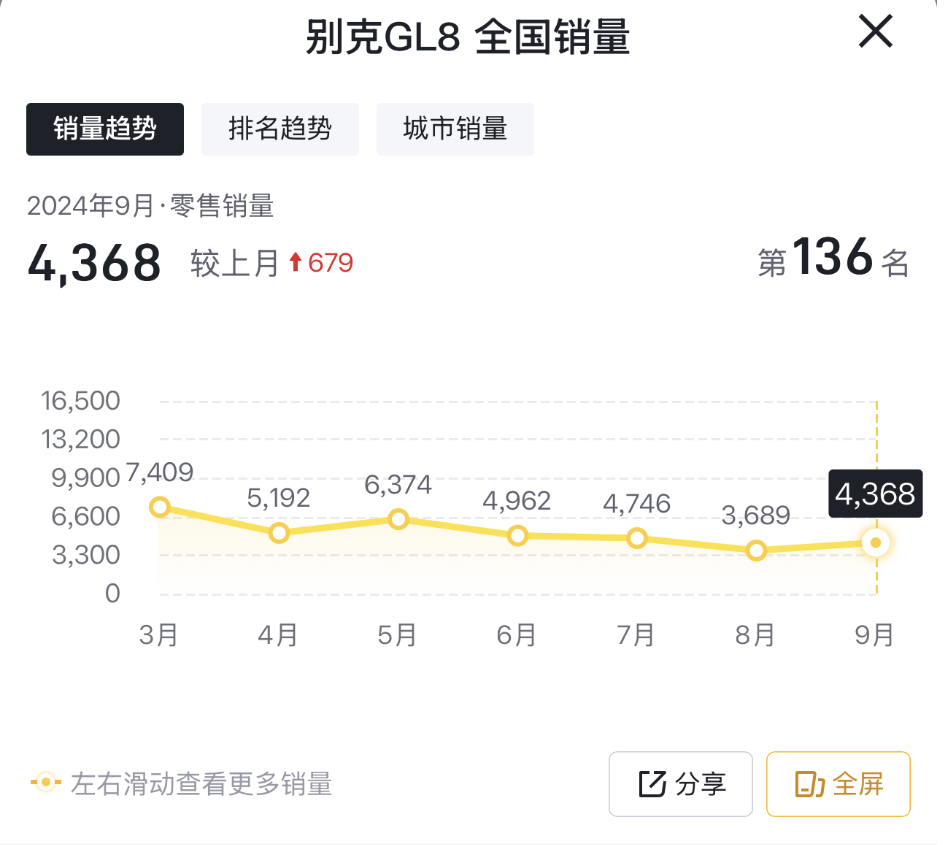 不過,我認為,即便如此,2024年9月份別克GL8的單月零售銷量環比上漲,依然是值得肯定的事情。